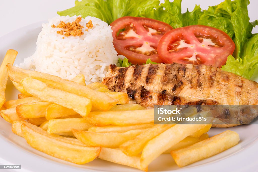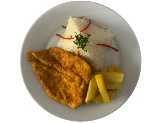 Filete de pollo o Hamburgues al plato con 2 guarniciones ( Arroz, papas fritas, ensalada o pure)